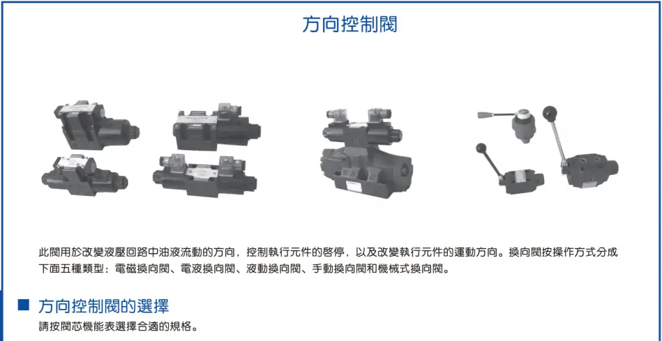 2、應根據(jù)所需控制的流量選擇合適的換向閥通徑。如果閥的通徑大于10mm,則應選用液動換向閥或電液換向閥。使用時不能超過制造廠樣本中所規(guī)定的額定壓力以及流量極限,以免造成動作不良。