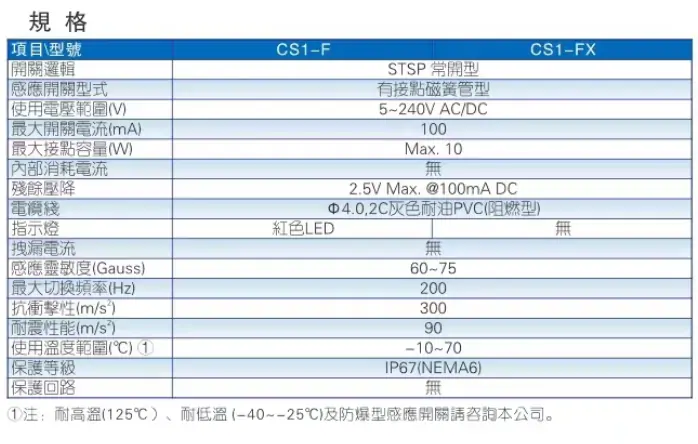 CS1-A CS1-E CS1-F CS1-F (1.5米) CS1-F 020 CS1-F020 CS1-FB(常閉型) CS1-G CS1-G (1.5米)
